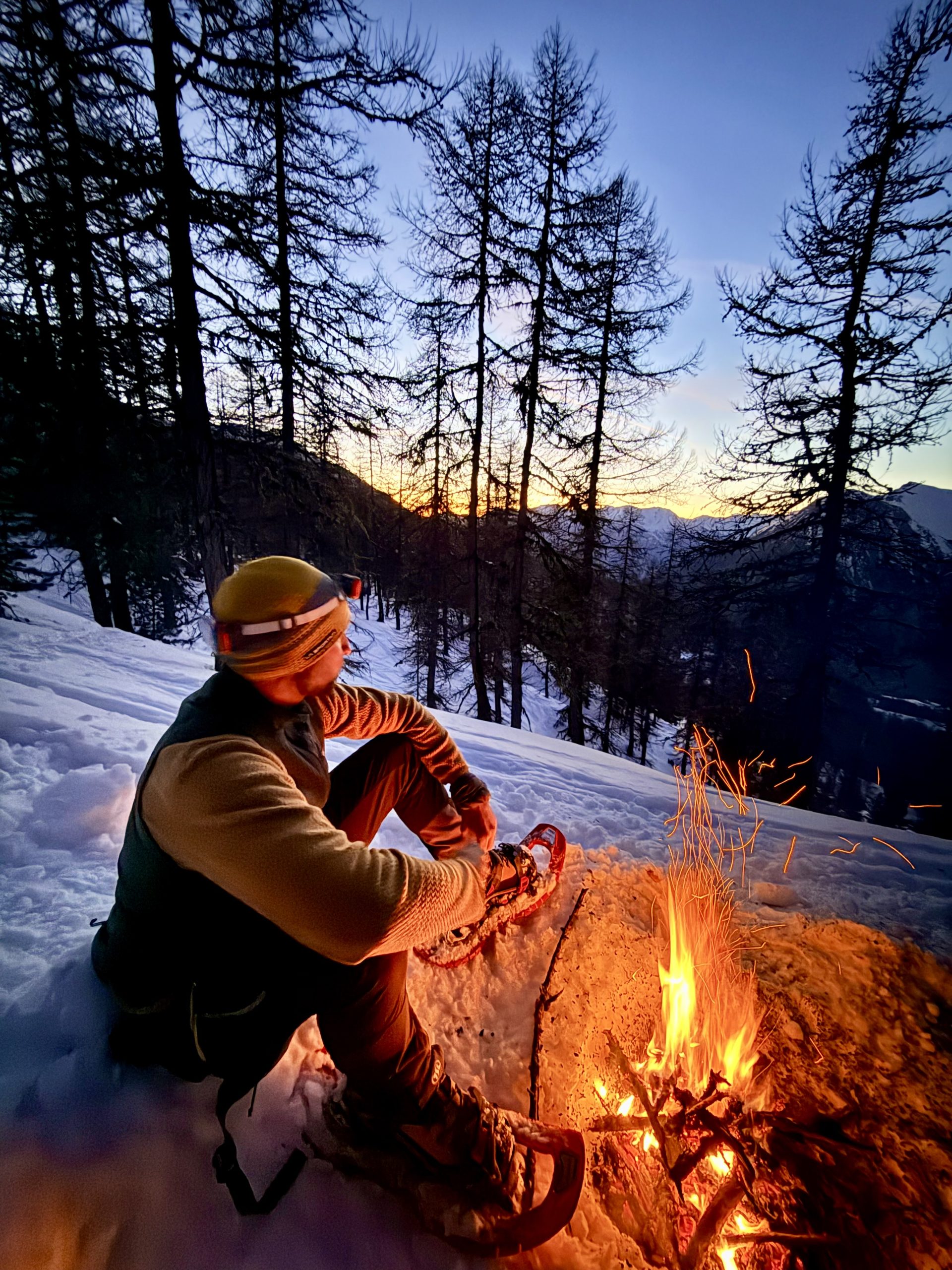 Arrivés sur notre spot, nous avons pris le temps de nous installer et d’allumer un feu.