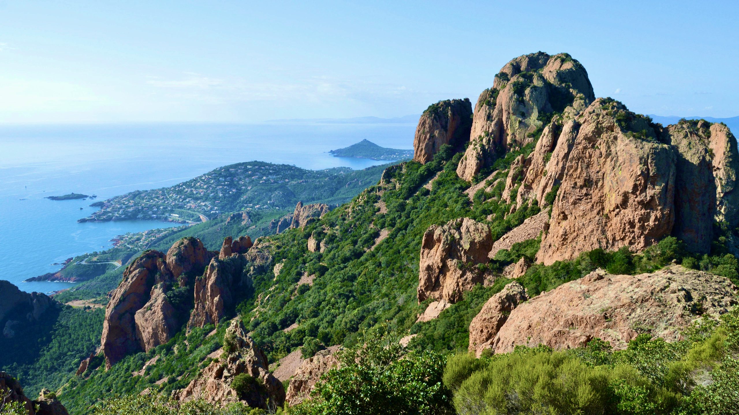 Sommet emblématique de l'Estérel il nous offrira une vue spectaculaire sur le front de mer. Quel contraste avec cette roche rouge.